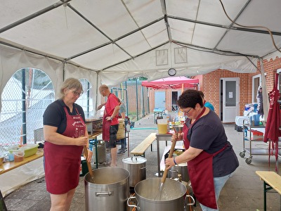 Die Kizzels sind heile am Zeltplatz angekommen! Die Zeltvorstellung beginnt gleich und nebenbei bereitet das Kochteam schon mal das Essen vor :)